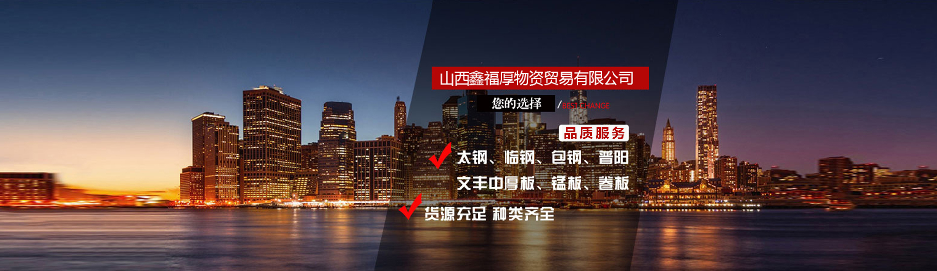 山西鑫福厚物資貿(mào)易有限公司成立于2000年8月,現(xiàn)位于太原市興華西街奇天瑞鋼材市場北市場A區(qū)27-30號,緊臨興華街(東社)高速口,地理位置好,渠道流暢,交通便利。我公司現(xiàn)主營太鋼、臨鋼、包鋼、文豐中厚板、卷板、錳板、開平板、小塊板、不銹鋼、品種鋼及各種螺紋、線材、型材等,貨源充足,種類齊全。